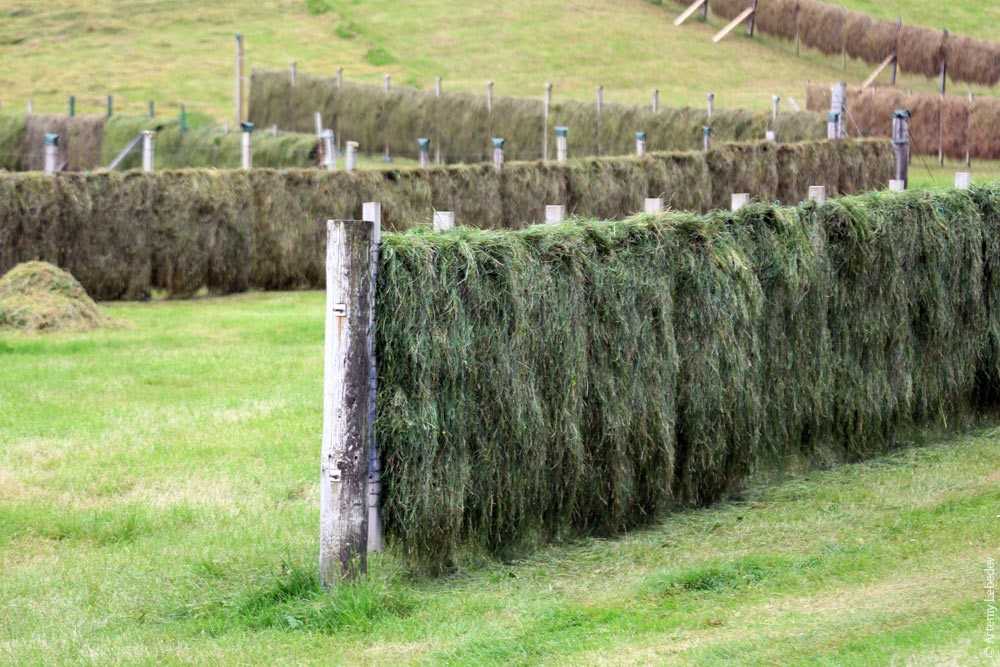 Сочный зеленый оттенок имеют травы злаковых культур, а также донник, пырей, тимофеевка. Если сено зеленое, в его качестве не нужно сомневаться. Но и бурую траву не нужно считать плохим. В нем преобладает клевер. В заготовке синеватого цвета присутствует осока.