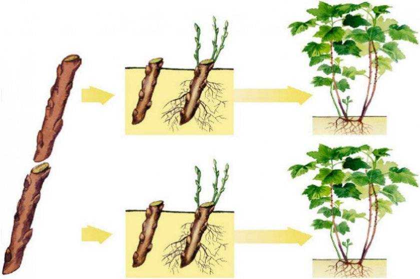 Красную смородину не сложно размножить самостоятельно. Для этого используют черенки, отводки или деление куста.