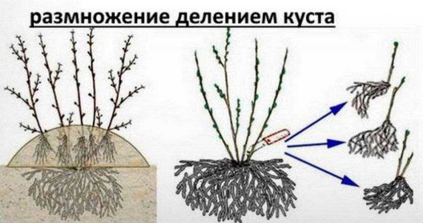 Осенью можно заготовить одревесневшие черенки из однолетней корневой поросли или 2-3-летних ветвей. Длина такого черенка составляет 18–20 см, а диаметр около 8 мм. После нарезки посадочный материал следует поместить во влажный песок и оставить на зиму в помещении при температуре +2…+3°C. Весной черенки высаживают в школку под наклоном, оставляя на поверхности 2 почки. Посадку накрывают плёнкой, поддерживают влажность грунта и ждут укоренения до сентября, после чего пересаживают на выбранное для куста место.
