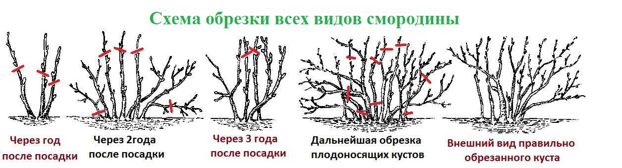 Ранней весной, до распускания почек, необходимо проводить профилактические осмотры и обрезки. Ягоды появляются на побегах 2-3 года, старые же ветки плодоносят мало, а сил у растения забирают много. Черная смородина характеризуется тем, что без обрезок ягоды уходят все дальше на периферию веток, поэтому загущающие, некачественные побеги требуется удалять. Подозрительные, лишние ветки и листья следует обрезать в течение всего сезона.