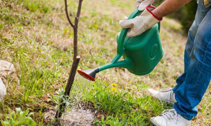 Сразу после посадки дерево поливают. Следующее орошение проводят спустя неделю.