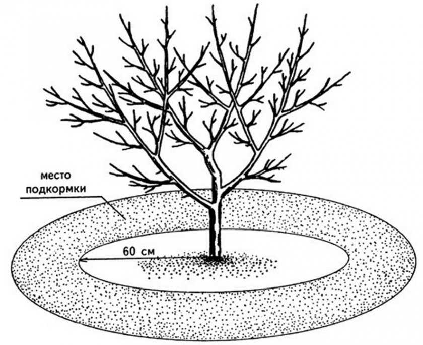 Вносят удобрения под корень, но чем моложе деревце, тем дальше от ствола располагается прикормка. Сочетается подпитка почвы с ее увлажнением – одновременно организовывается полив.