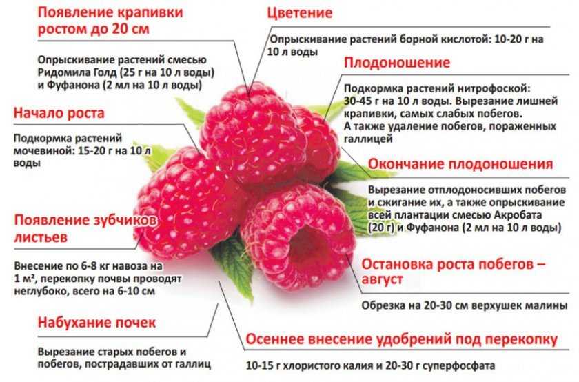 С помощью весенней обработки малинника специальными препаратами в профилактических целях можно предупредить развитие на кустах таких опасных заболеваний, как серая гниль, пятнистость листьев, антракноз, септориоз и ржавчины. Кроме описанных выше препаратов можно использовать 3% бордоскую смесь. Повторная профилактическая обработка ею осуществляется в середине осени.