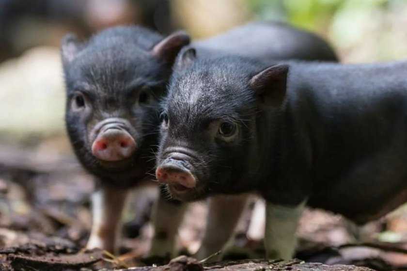 Мини-пиги были выведены человеком в середине 50-х годов ХХ столетия в декоративных целях. Главной особенностью этой свиньи является её миниатюрный размер по отношению к сородичам. Взрослые особи зачастую достигают высоты не более 40 см и отличаются равномерным тёмным окрасом и небольшой щетиной по всему телу. При этом их масса колеблется от 10–15 до 70 кг. Живут такие питомцы около 10–15 лет.