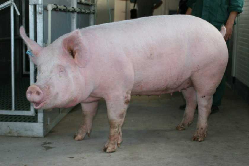 Крупная белая порода считается одной из наиболее распространённых в мире. Пришла она на смену неповоротливым и массивным гибридам, отличающимся чрезмерно жирной продукцией. Эта свинья имеет большое, плотное и округлое тело, но при этом отличается подвижностью и грациозностью. Благодаря этому крупная белая имеет более диетическое и нежное мясо, отличающееся сбалансированностью сальной прослойки и выходом чистого продукта до 80%. Живут такие свинки около 15 лет.