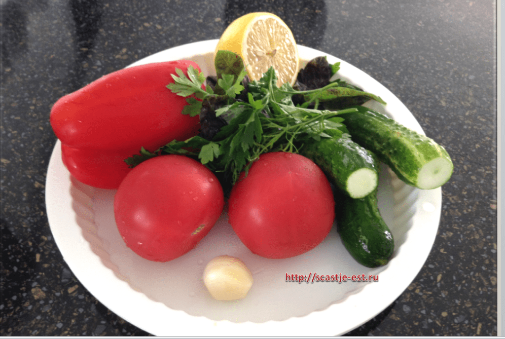 Основу классического рецепта составляют всего лишь три продукта — помидоры, сладкий перец и огурцы, а остальные импровизации зависят от нашей фантазии. Этот рецепт самый простой и без хлеба. Хотя многие кулинары утверждают, что белый хлеб обязателен, позволю не согласиться. Мне нравится этот облегченный вариант.