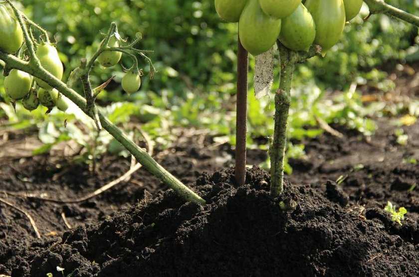 Окучивание – создание вокруг ствола небольшого холма из грунта. Окучивают томаты для усиления развития корневой системы. Хорошее развитие корней улучшает усвоение микроэлементов томатом.