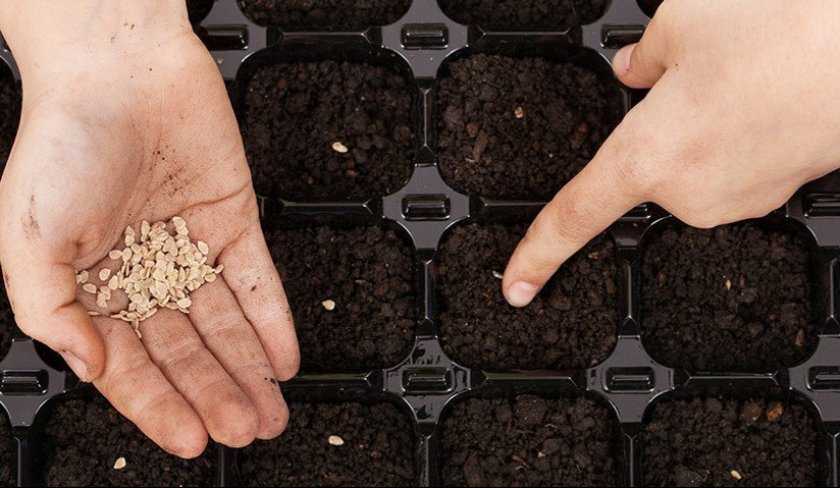 Семена сеют в конце марта — начале апреля, за полтора месяца до последних весенних заморозков. В качестве посадочной тары используют любую емкость глубже 7 см. На дно насыпают дренаж, затем основной грунт, представляющий собой удобренную смесь торфа, покупной земли и садового дерна.