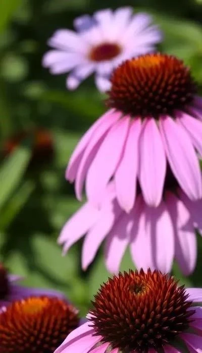 Сорта: Существует множество сортов эхинацеи, отличающихся цветом и формой цветков. Популярные сорта: ‘Magnus’ (розовый), ‘White Swan’ (белый), ‘Cheyenne Spirit’ (разноцветный).