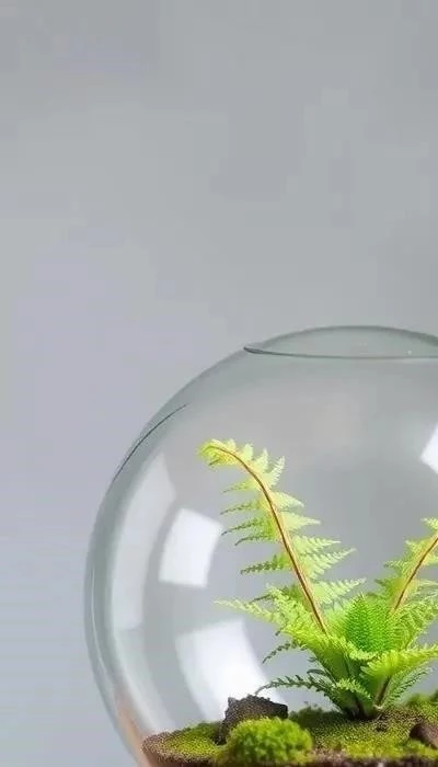 Минимализм во флорариумах 2025 – это чистые линии и акцент на форме. Геометрические емкости из стекла (куб, шар, прямоугольник) подчеркивают изящество микропапоротников. Композиции лаконичны: один вид папоротника или небольшая группа. Декор – минимальный: галька, песок, коряги, подобранные в нейтральной гамме. Главная задача – создать ощущение простора и гармонии.