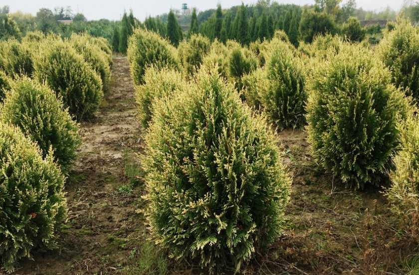 Саженец туи с открытой корневой системой высаживают в возрасте 4-5 лет. При планировании посадки группы растений нужно выдерживать между саженцами расстояние 3–5 м, в зависимости от типа и размера взрослой особи.