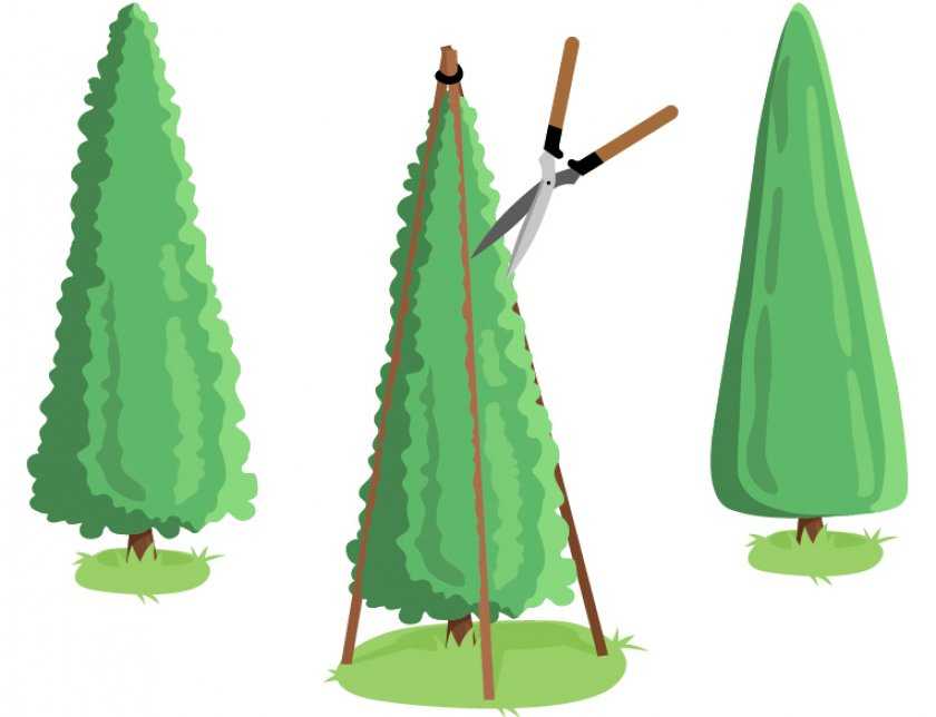 Формировать из кроны разные фигуры можно после того, как оно достигнет нужной высоты. Например, можно придать ей форму: шара, пирамиды, колонные или конуса. Повторная обрезка проводится в конце летнего сезона.
