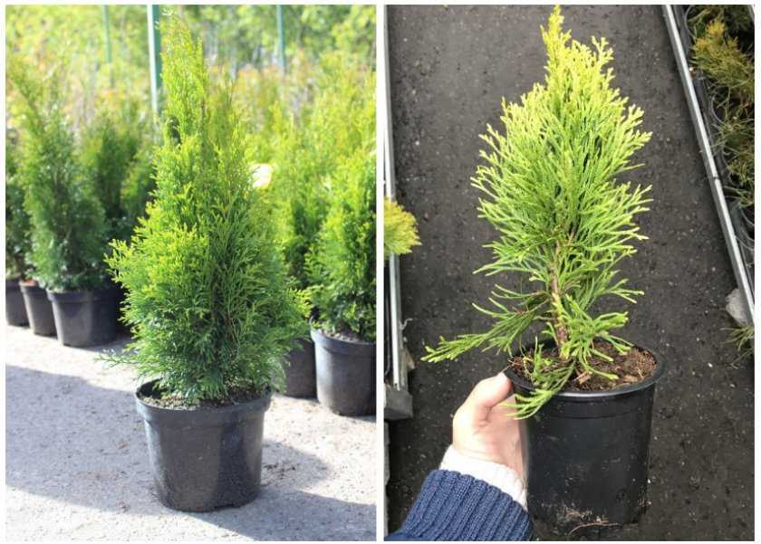 Дополнительно стоит обратить внимание на размер земляного кома туи: если он слишком маленький, значит корневая система плохо развита. Желательно, чтобы дерево было прочно укоренено в контейнере