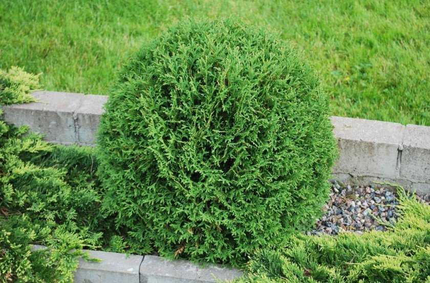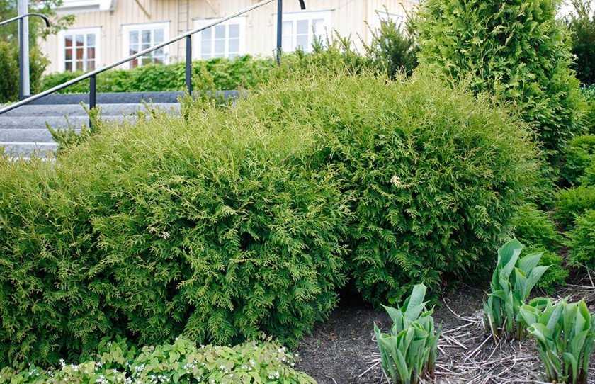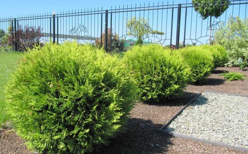 Карликовые кустарники — довольно декоративные растения, с их помощью сад будет выглядеть аккуратно и ухоженно. Туи — семейство Кипарисовых, разновидность вечнозелёных растений, а это означает, что даже в зимнее время они будут радовать своей зеленью. Они часто используются в ландшафтном дизайне, в высадке живых изгородей. Кустарники этого вида не привередливы в уходе, что значительно уменьшает траты времени на создание красоты в саду.