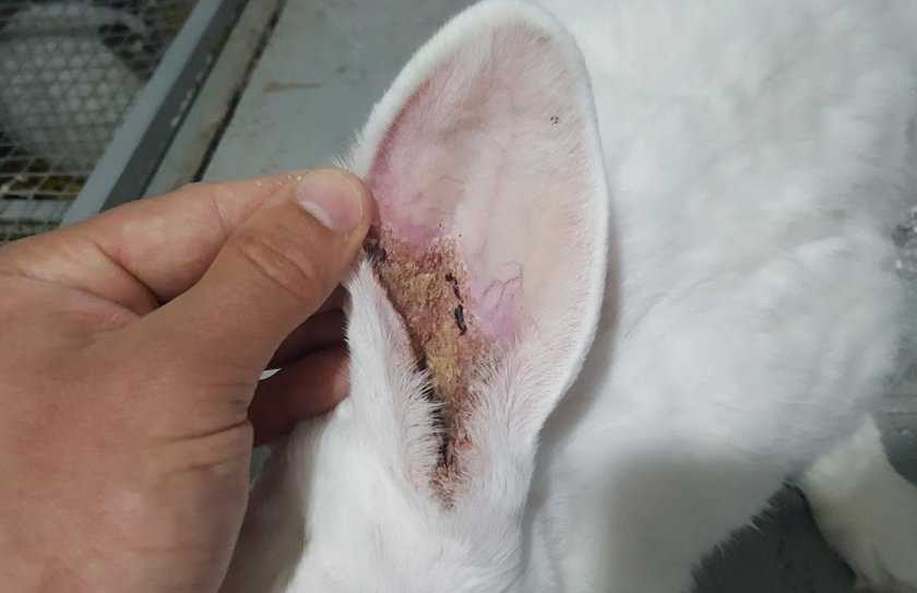 Если повреждение механическое и никаких признаков заболевания больше нет, обработайте рану перекисью водорода. После нужно остановить кровь, прижигая рану 70% спиртом. Обеззараживание раны убережёт кролика от инфицирования, воспаления и гниения тканей. При необходимости накладывается любая антисептическая мазь.