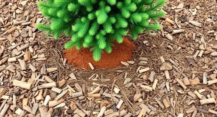 Мульчирование почвы вокруг хвойных растений – важный прием, который помогает сохранить влагу в почве, защитить корни от перегрева и предотвратить рост сорняков. В качестве мульчи можно использовать щепу, кору, опилки, торф или компост. Слой мульчи должен быть не менее 5-7 см. Мульчирование особенно важно для молодых растений, так как их корневая система еще не сформирована и более уязвима к неблагоприятным условиям. Я всегда мульчирую свои хвойные растения корой, так как она не только сохраняет влагу, но и придает им декоративный вид.