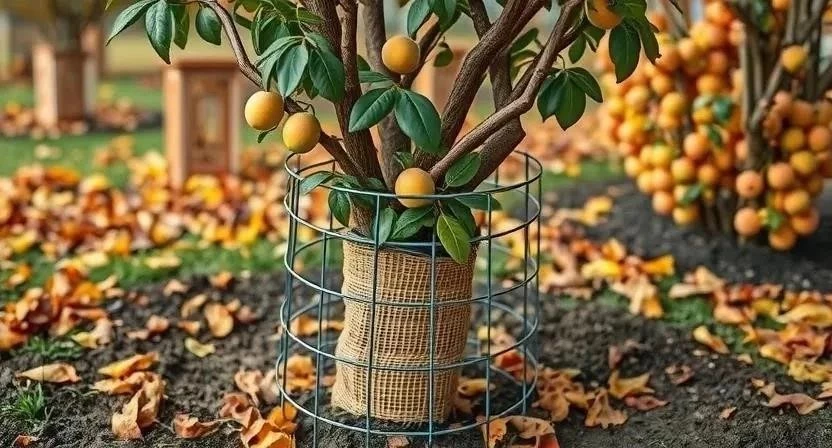 - Защита от грызунов: Обвяжите стволы сеткой от грызунов.