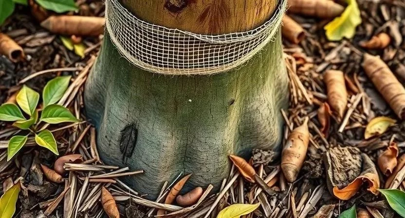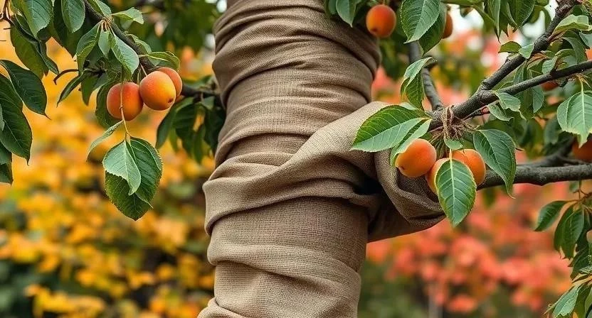 - Обвязка ствола: Обвяжите стволы мешковиной или другим подходящим материалом.