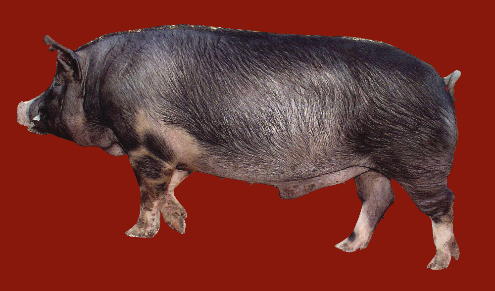 Это довольно крупные животные, черного окраса, с рыхлой конституцией. Вес хряков – 310-320 килограммов, свиней – 190-200 килограммов. В одном приплоде может появиться 9-10 поросят. Как и все крупные мясные породы, быстро набирает привес, не менее 700 граммов в сутки.