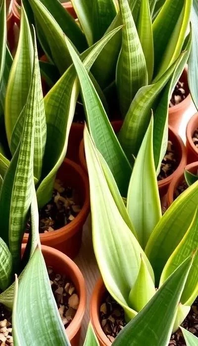 Sansevieria trifasciata – самый распространенный вид. Его отличительная черта – длинные, прямостоячие листья с темно-зелеными полосами, окаймленными желтой или белой полосой. Существует множество вариаций этого вида, например, ‘Laurentii’ с широкими желтыми полосами по краям листьев, ‘Golden Hahnii’ – компактный сорт с золотистыми полосками, и ‘Black Gold’ с почти черными листьями и узкой золотистой полосой. Трехполосная сансевиерия неприхотлива и хорошо переносит засуху. Она отлично очищает воздух, удаляя формальдегид и бензол.