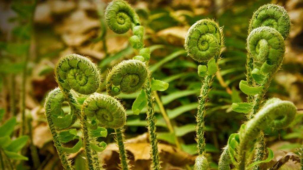Побеги папоротника, когда только прорастают, похожи на улитку
