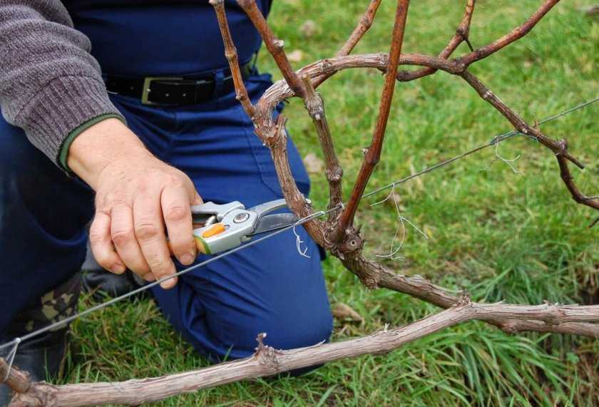 Летом обрывают листья над гроздьями, чтобы ягоды получили больше солнечного света. Весной обрезку не проводят, поскольку лоза выделяет «слезы». В результате растение теряет урожай или погибает. После схода снега устраняют только сухие и вымерзшие побеги.