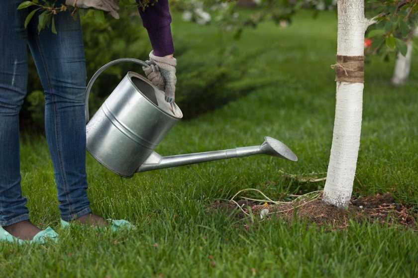 Молодым саженцам обеспечивают умеренное увлажнение. На протяжении первых 2 лет проводят процедуру 4–5 раз за сезон, при этом обязательно воду нужно вносить во время цветения, а также в фазу налива ягод. В юном возрасте дереву нужно не более 10–15 л воды. Деревья старше 3 лет поливают не более 3–4 раз за сезон. Для этого в зависимости от возраста вишни используют от 30 до 60 л воды. В регионах с дождливым летом в поливе вишня не нуждается.
