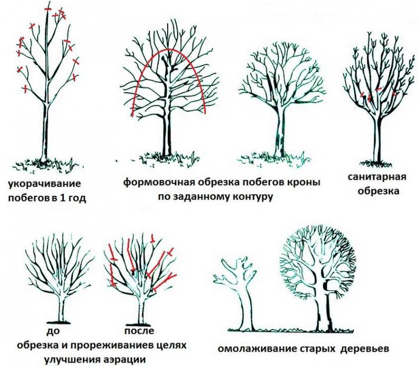 Если прирост снижен до 15 см и менее, нужно сделать обрезку скелетных веток над первым боковым разветвлением на прошлогодний прирост. Обрезку слабых и пострадавших от заморозков деревьев лучше отложить до следующей весны. Необходимо также избавляться от прикорневой поросли, которая способствует ослаблению дерева. Ростки нужно обрезать как можно ближе к корню, иначе они разрастутся с новой силой.