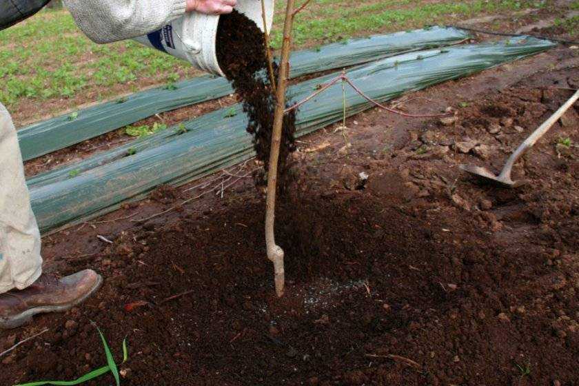 Саженец рекомендовано ставить в ямку с северной стороны от колышка