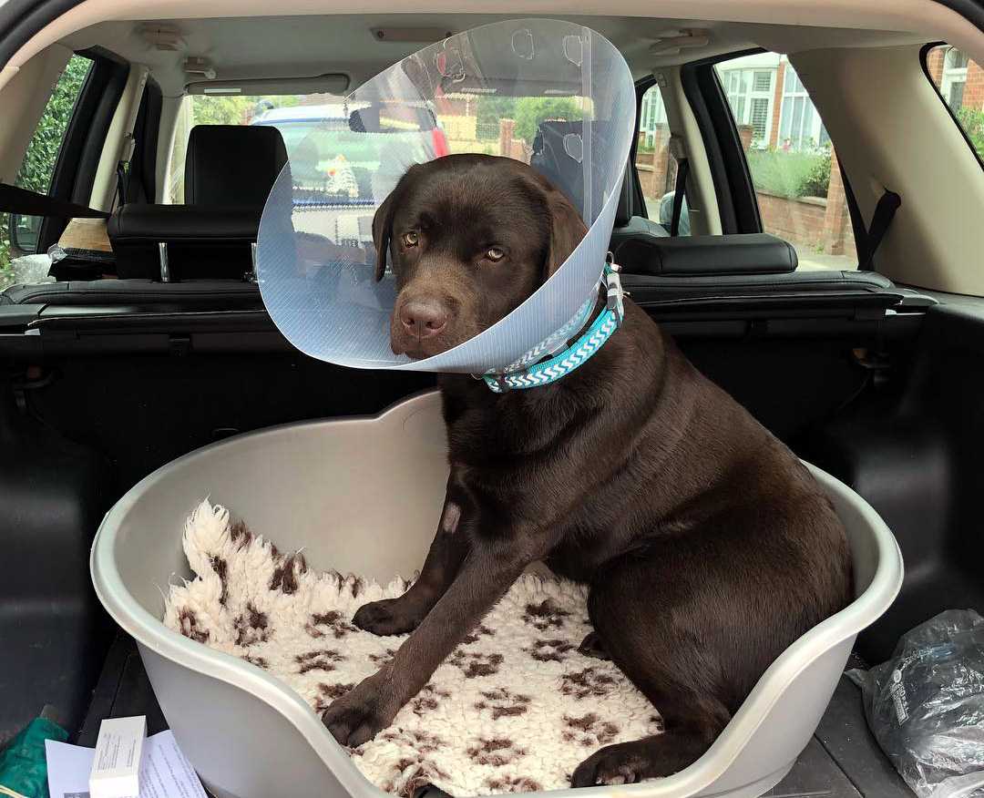 Лабрадору не нравится воротник, но он необходим