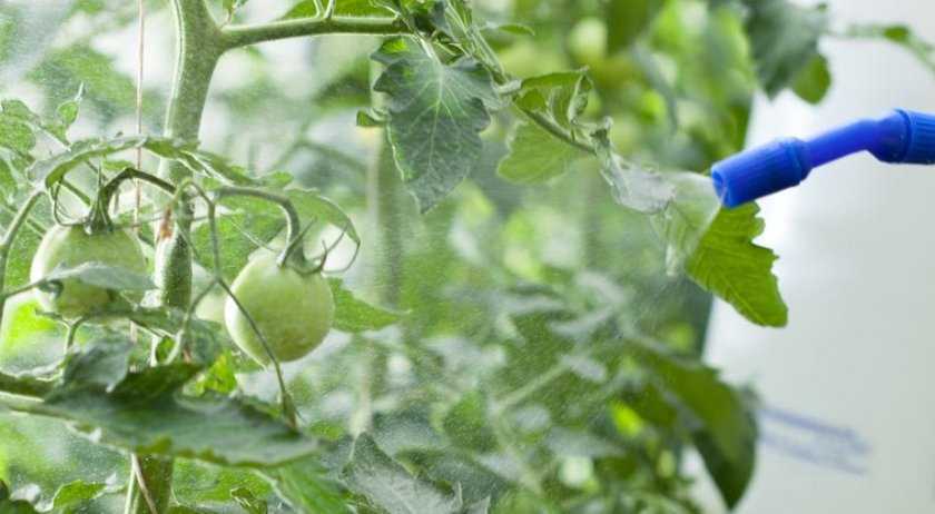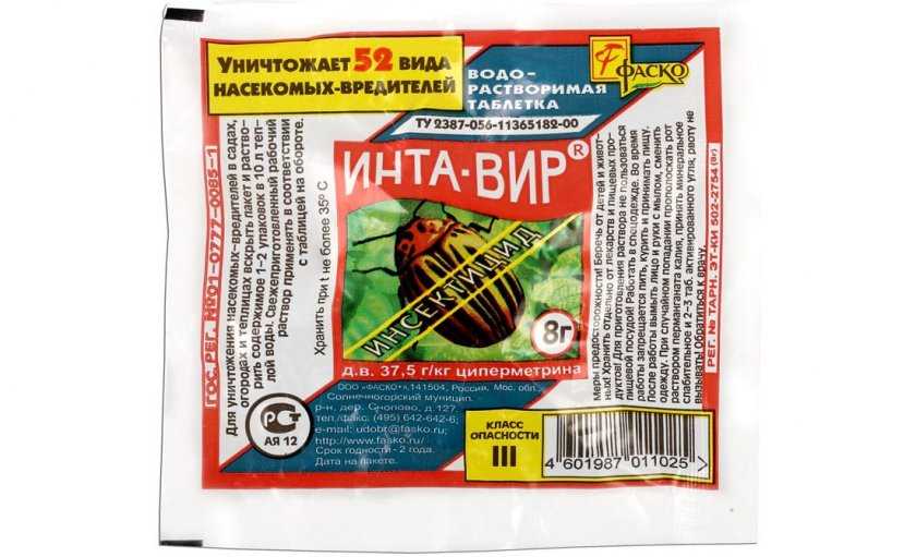 Инта-Вир. Средство растворяется в воде и выпускается в виде таблеток или порошка. На 10 л чистой воды используют 1 таблетку или 8 г порошка. Можно сочетать данный препарат с другими пестицидами при условии отсутствия у них бурной щелочной реакции. Опрыскивать помидорные кусты данным средством можно один раз в 2 недели и только в период активного роста и цветения растений.
