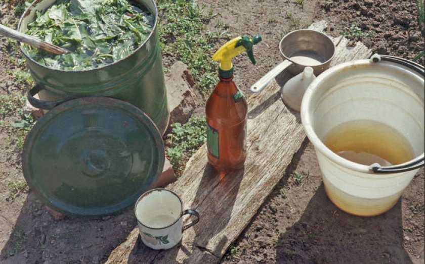 - 300 г древесной золы заливают кипяченой водой, после чего оставляют настаиваться. Для лучшего прилипания в остывшую процеженную смесь добавляют 40 г мыла.