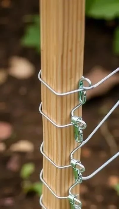 Установка: При установке столбов важно учитывать тип почвы. В легких почвах столбы необходимо углублять глубже, чтобы обеспечить устойчивость конструкции. Используйте оцинкованную проволоку, чтобы избежать коррозии. Натягивайте проволоку не слишком сильно, чтобы не повредить кору растений. Регулярно проверяйте натяжение проволоки и при необходимости подтягивайте ее.
