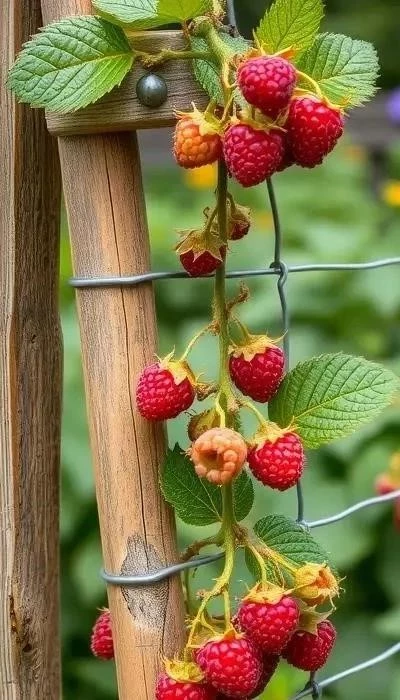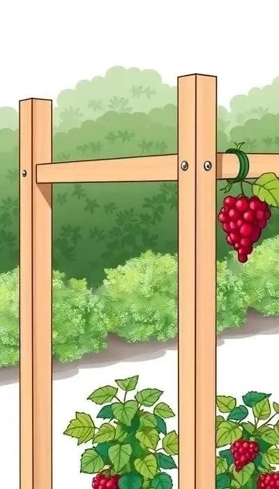 1. Однорядная шпалера для малины: Проста в установке, требует минимум материалов (столбы, проволока). Преимущества: хорошая вентиляция, освещение, удобство сбора урожая. Недостатки: подходит только для ремонтантной малины. Материалы: столбы (деревянные или металлические), проволока (оцинкованная). Установка: столбы устанавливаются на расстоянии 2-3 метра друг от друга, между ними натягивается проволока в 2-3 ряда.