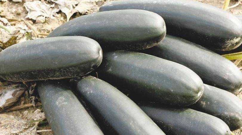 Это растение созревает за 45 дней. Его плоды темно-зеленого цвета, приближенного к черному. Кожура тонкая, а мякоть зеленая и нежная. На одном кусте может одновременно завязаться до 4-5 плодов.