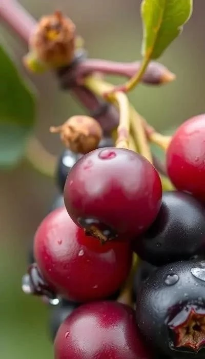 Ягоды йошты по размеру превосходят ягоды смородины, но уступают крыжовнику. Они имеют овальную форму, темно-фиолетовый или почти черный цвет при созревании. Вкус ягод йошты – это гармоничное сочетание сладости смородины и кислинки крыжовника, с легкими фруктовыми нотками. Характеристики ягод также включают в себя высокое содержание витаминов и антиоксидантов, что делает их полезным продуктом для здоровья. Йошта отличается повышенной урожайностью и морозостойкостью, что делает ее привлекательной для садоводов в различных климатических зонах.