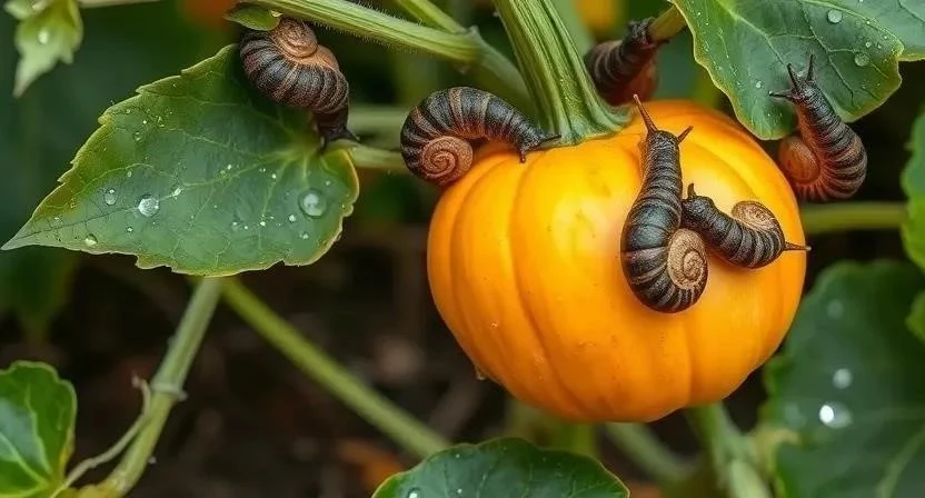 2. Слизни и улитки: Питаются листьями и плодами тыквы, оставляя на них характерные отверстия.