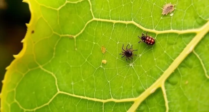 3. Паутинный клещ: Микроскопический вредитель, который высасывает сок из листьев, вызывая их пожелтение и засыхание.