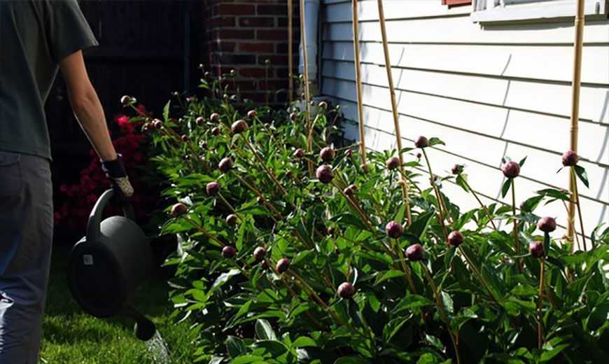 Поливать пионы необходимо регулярно, в особенности перед цветением, в первой половине июня. Также требуется полив во время формирования почек и роста корней. Это время относится к июлю и сентябрю.