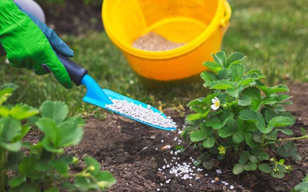 Так как клубника работает и выдает плоды безостановочно почти весь сезон – то вполне логично, что ей нужна постоянная подкормка: еще на стадии подготовки почвы закладываются удобрения с содержанием фосфора, а также в течение роста и развития кусты снабжают азотом и калием.