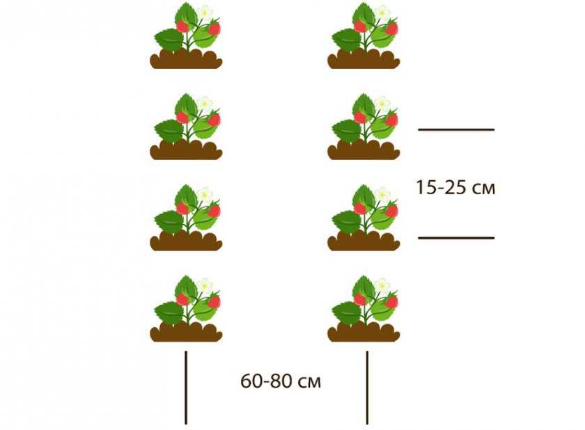 Рассаду на грядке распределяют двустрочным или однострочным способом. Интервал между кустами должен составлять 30 см, в междурядье остаётся 60 см, а между строками — 40 см. Если строка одна, то соблюдается лишь интервал между рядами и кустами в ряду.