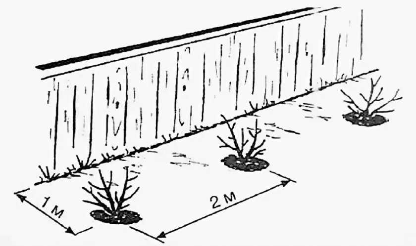 - Ямы для посадки готовят заранее. Высокорослые кустарники в форме лиан размещают на расстоянии от 2-х до 2,5 метров друг от друга. Дистанция между низкорослыми растениями должна быть от 40 до 50-ти см.