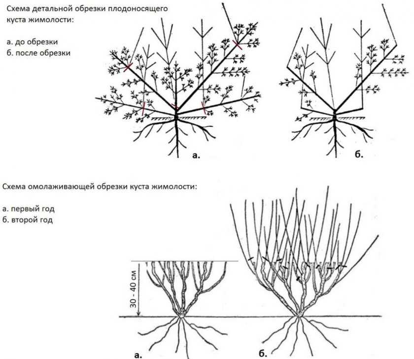 Если обрезка стала необходимой, её назначают на осень. Для разрежения куста вырезают несколько «нулевых» побегов, растущих прямо из земли. Вырезают и сухие, повреждённые побеги, а также короткие ветви. Убирают старые ветви, плодоношение которых значительно упало, а также побеги, расположенные в самом низу. Это позволит открыть доступ к приствольному кругу для обработки почвы.Весной проводят санитарную обрезку, удаляя поражённые морозом или болезнями кончики побегов.