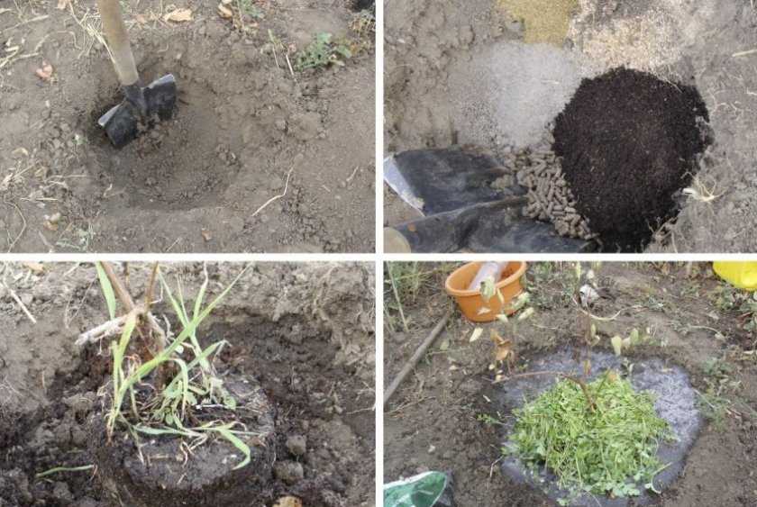 При посадке нескольких кустов между ними соблюдают расстояние в 1,5 м. Лунки копают размерами 40×60×40. На дне лунки формируют холм из питательной смеси садовой почвы и удобрений (суперфосфат и калийная соль по 50 г). При посадке соблюдают ряд правил:
