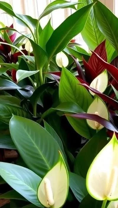 - Spathiphyllum ‘Petite Coco’: Компактный сорт, идеально подходящий для небольших помещений.